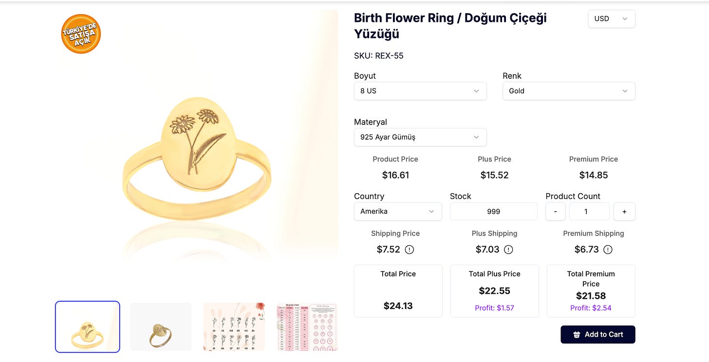 Turkey-Based Store: Fee is $12.8 | Net Profit: $23.42 (36% margin)