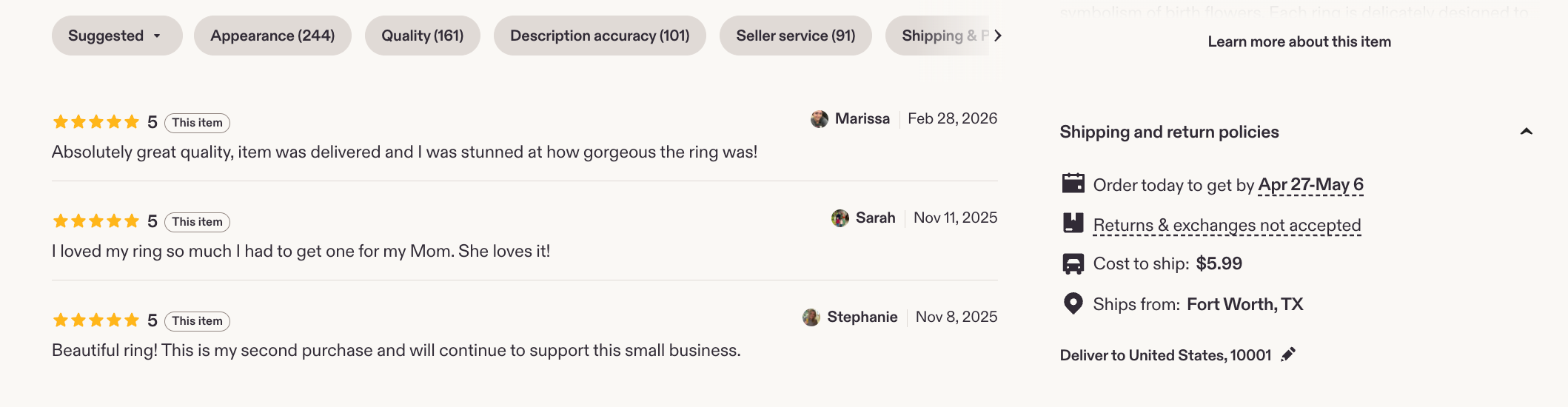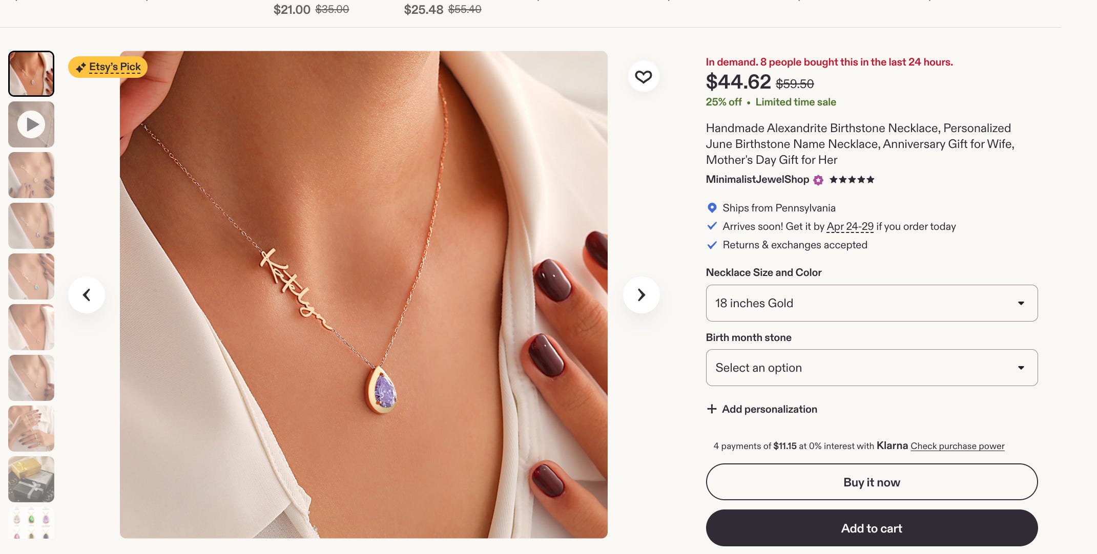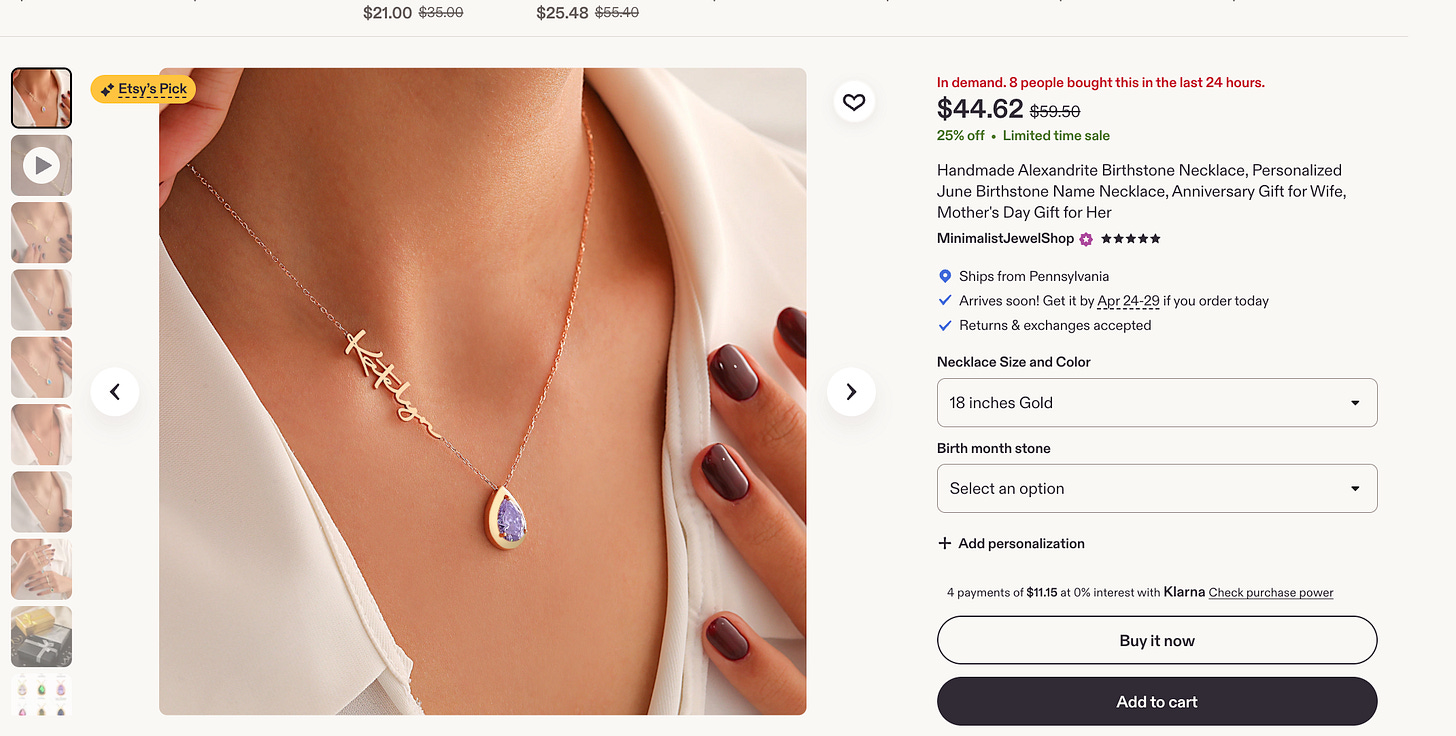 Finally, here is a product related to jewelry but isn’t jewelry itself: a jewelry box. This item has sold over 1,000 units in the last 30 days, generating $22,959 in revenue.